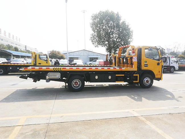 5、清障車是在專用底盤基礎(chǔ)上裝配托舉、拖拽、起重等裝置,對車輛進行清障拖牽、背載運輸?shù)茸鳂I(yè);